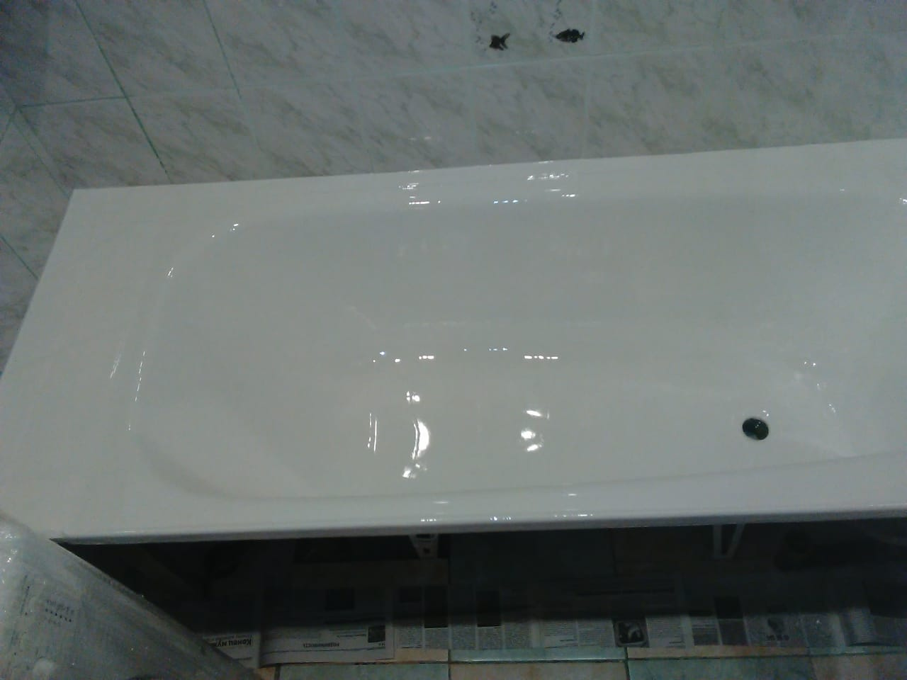 Покрытие литьевым мрамором получается однородным и плотным, по структуре и по цвету. Нет разводов, трещин, пятен. Ванна, покрытая лицевым мрамором белоснежно белая, глянцевая и гладкая.