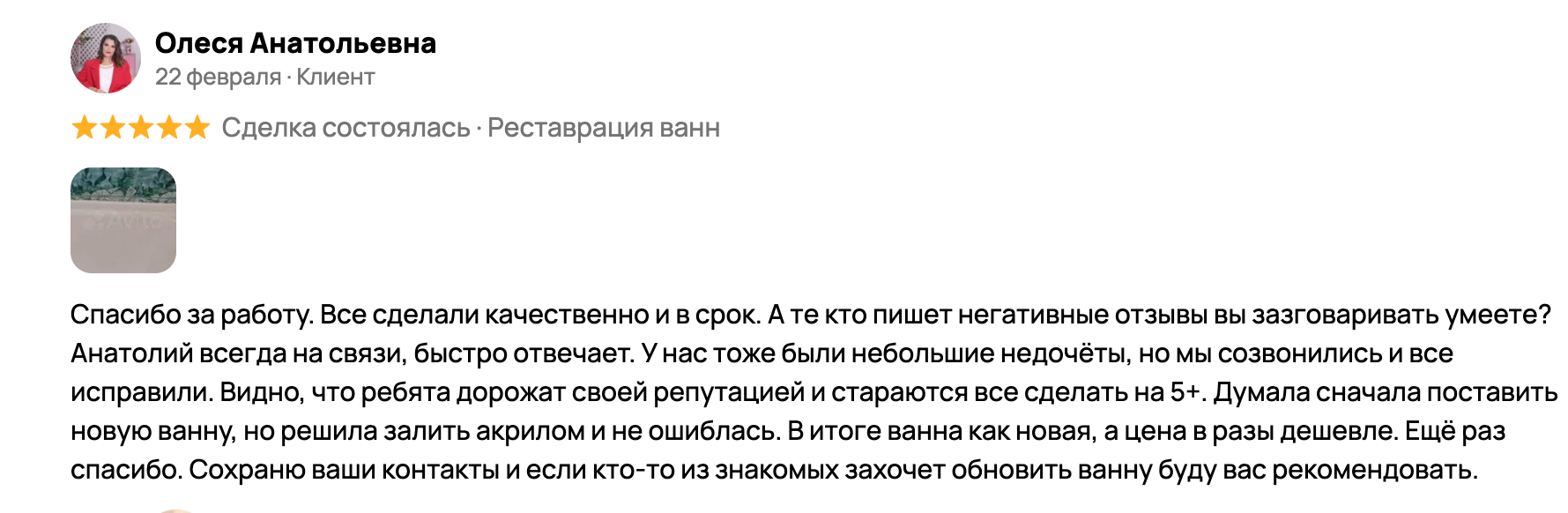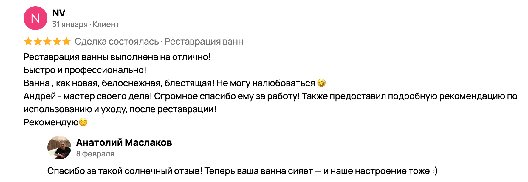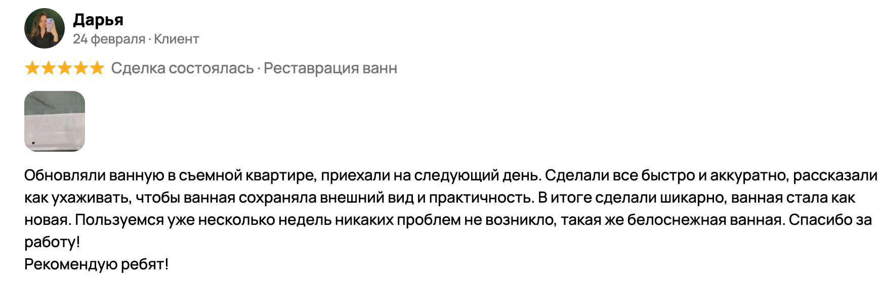 Отзывы клиентов, которые доверили нам реставрацию своей ванны в Новокузнецке