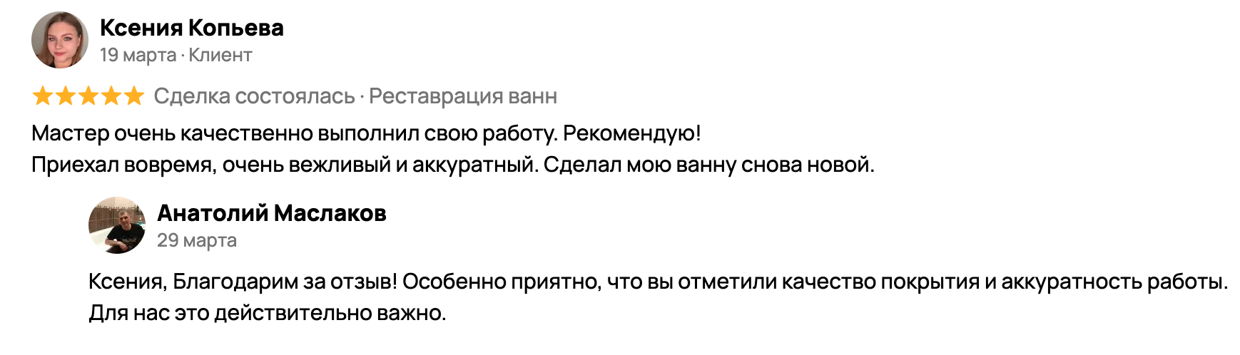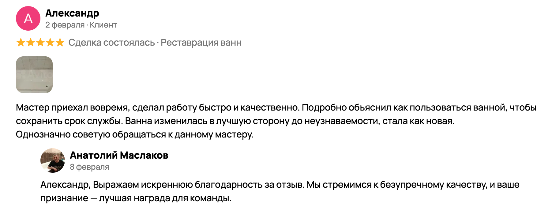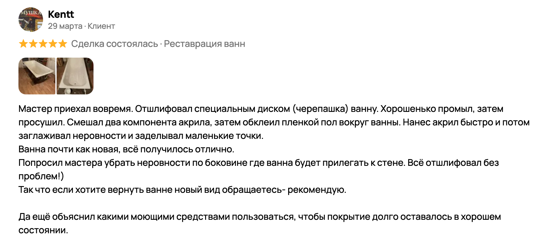 Отзывы клиентов, которые доверили нам реставрацию своей ванны в Новокузнецке